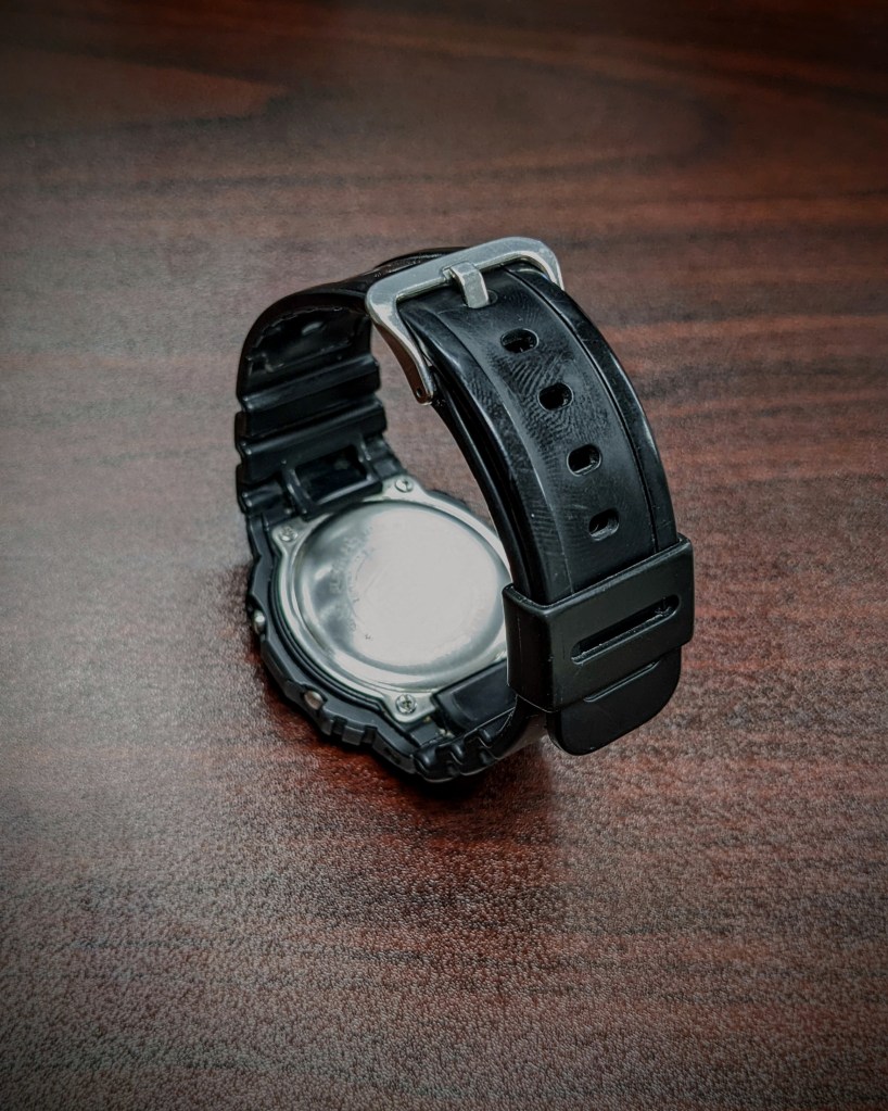The DW5600 features four push buttons at each corner of the bezel. The buttons are recessed enough to eliminate accidental pushing but I still find the buttons easy to press when cycling through the onboard selections, while out jogging or doing any other physical activities. The watch features an alarm, timer, back light and stop watch. This short list of features coupled with the size definitely makes this a “minimalist” watch compared to other G-shocks.