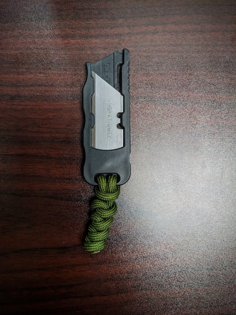 I believe the inclusion of a beater knife into your EDC can be a very valuable asset, even more so when the blade can be replaced so easily. This knife is great for quick cuts and opening boxes/containers without having to worry about dulling the blade or damaging the blade. It is cheap, lightweight and made in the USA.